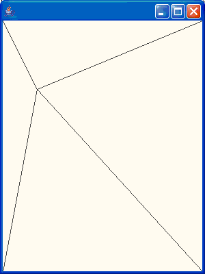 Now enhance the program so that the point p can be changed by a mouse click. Make an instance variable of type Point2D.Double. Add a method to the component that allows you to set the point, so that it can be changed during the program execution. If you did not have a point instance field (or x and y instance fields) in the component, you will need to modify the paintComponent method too, so that the lines all have one end in this point. What is the code of your modified component class? |