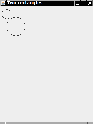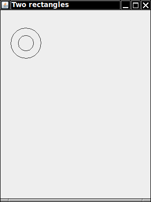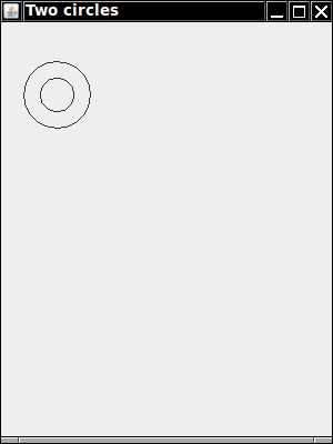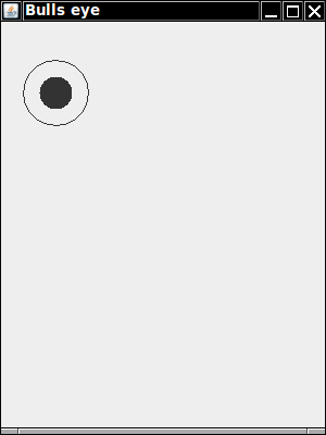 Graphics2D g2 = (Graphics2D) g; BullsEye be1 = new BullsEye(100, 100); be1.draw(g2); be1.grow(60); be1.translate(100, 100); be1.draw(g2); be1.grow(-90); be1.translate(-150, 100); be1.draw(g2);