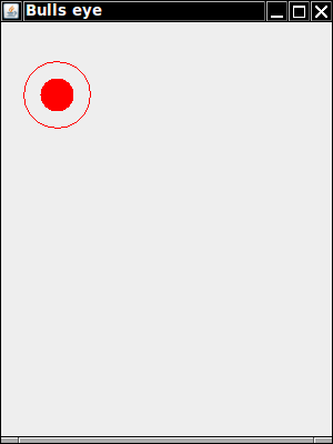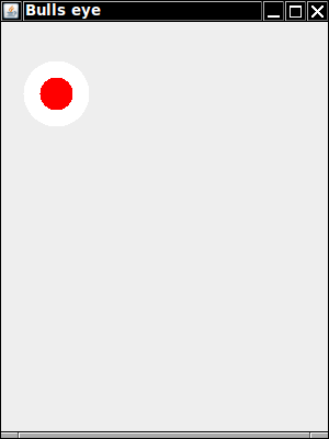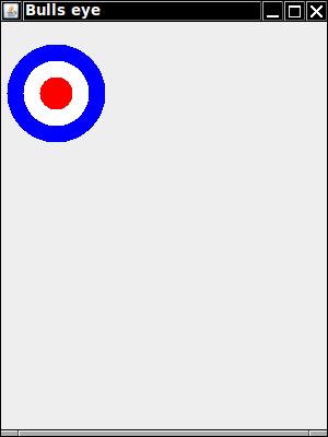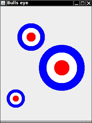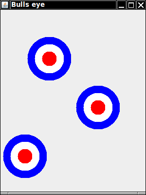 Graphics2D g2 = (Graphics2D) g; BullsEye be1 = new BullsEye(100, 100); be1.draw(g2); BullsEye be2 = new BullsEye(200, 200); be2.draw(g2); BullsEye be3 = new BullsEye(50, 300); be3.draw(g2);