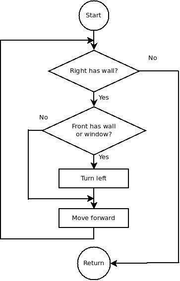 window and empty space.) Carol has been placed into a rectangular room with a single window. The width and height of the room, the position of the window, and Carol's position can be arbitrary. The following program has been designed to position Carol next to the window.