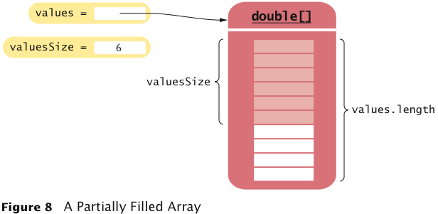 final int VALUES_LENGTH = 100; double[] values = new double[VALUES_LENGTH]; int valuesSize = 0;