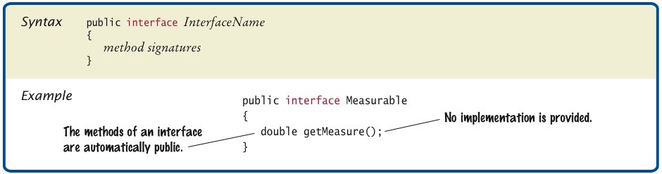 Note that the object to which meas refers doesn't have type Measurable; the type of the object is some class that implements the Measurable interface