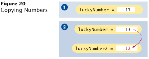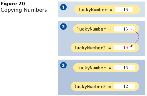 int luckyNumber = 13; int luckyNumber2 = luckyNumber; luckyNumber2 = 12;