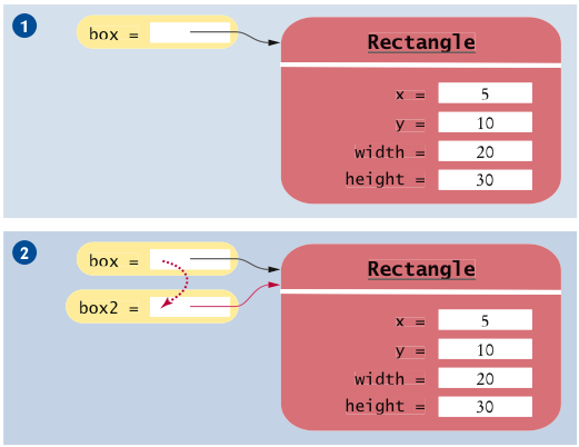 Rectangle box = new Rectangle(5, 10, 20, 30); Rectangle box2 = box;