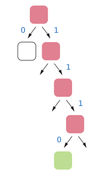 White 0 Pink 100 Yellow 1010 Blue 10110 Green 10111 Orange 11