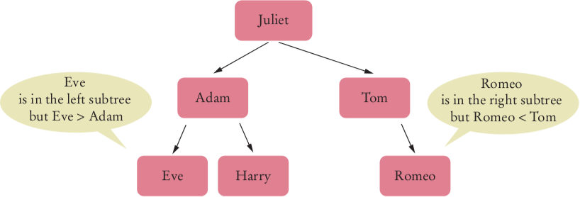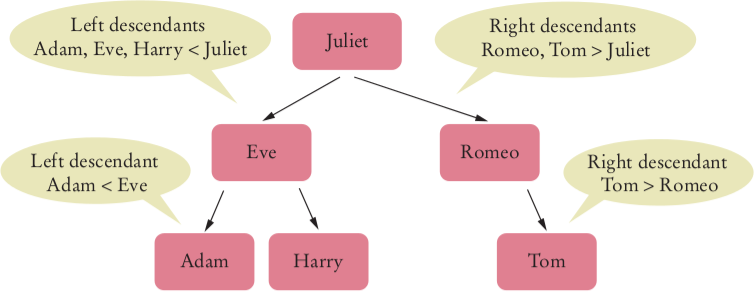 - The data values of all descendants to the left are less than the data value stored in the node, and all descendants to the right have greater data values.