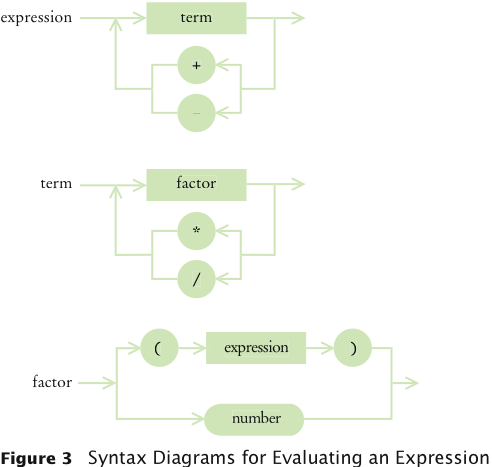 public int getExpressionValue() { int value = getTermValue(); boolean done = false; while (!done) { String next = tokenizer.peekToken(); if ("+".equals(next) || "-".equals(next)) { tokenizer.nextToken(); // Discard "+" or "-" int value2 = getTermValue(); if ("+".equals(next)) value = value + value2; else value = value - value2; } else { done = true; } } return value; }
