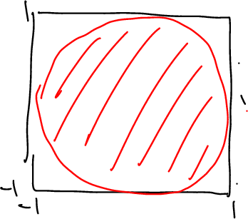 - (optional) One way to compute pi is through random simulation. Generate random floating-point numbers x and y between -1 and 1. Check whether the point (x, y) lies within the unit circle, i.e. x2 + y2 ≤ 1. If so, call it a hit. Then the ratio hits/tries is approximately π /4 (because the square in which x and y are located has area 4.) Write a program that computes π from 1,000,000 tries.